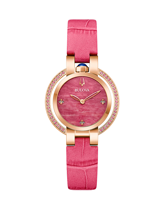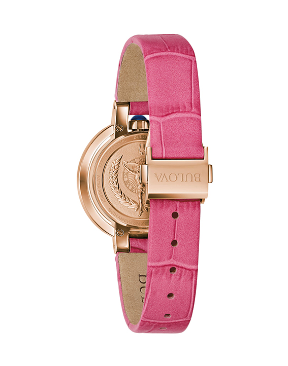Bulova Rubaiyat Four Seasons 150th Ann. : orologio solotempo con cassa in acciaio finitura color oro rosa, cinturino in pelle, quadrante analogico, vetro zaffiro, impermeabile 30 mt, fondello a pressione, chiusura cinturino deployante. Diametro cassa 30 mm – spessore cassa 8,50 mm – Peso gr. 32